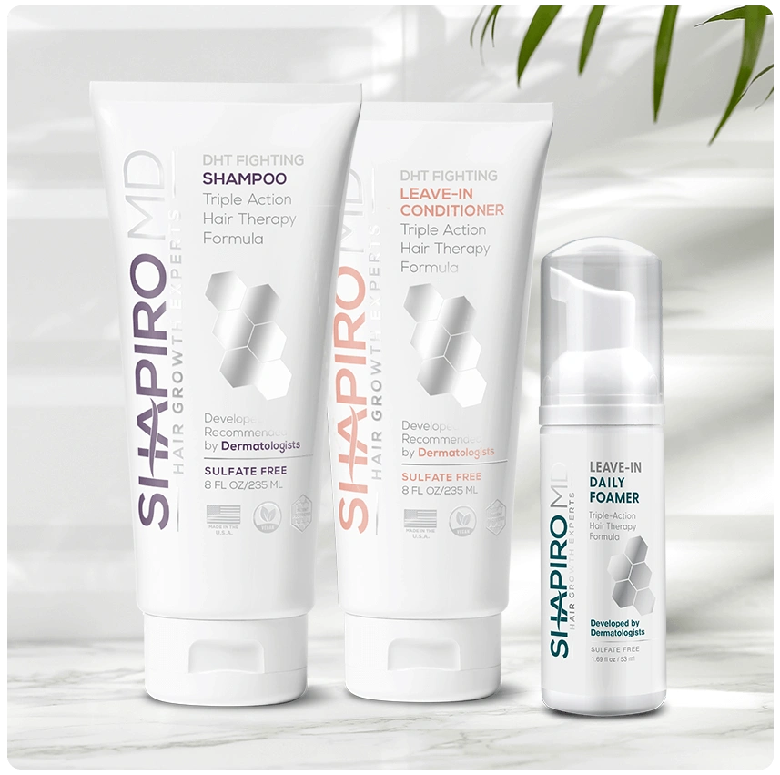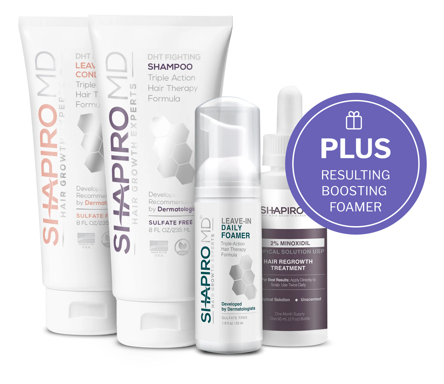 Leave-In Foamer combines 3 all-natural DHT fighting extracts in one powerful hair loss formulation that you can use on the go. (Regular value $20 ) Get it FREE today with the Shapiro MD Hair Regrowth System.
